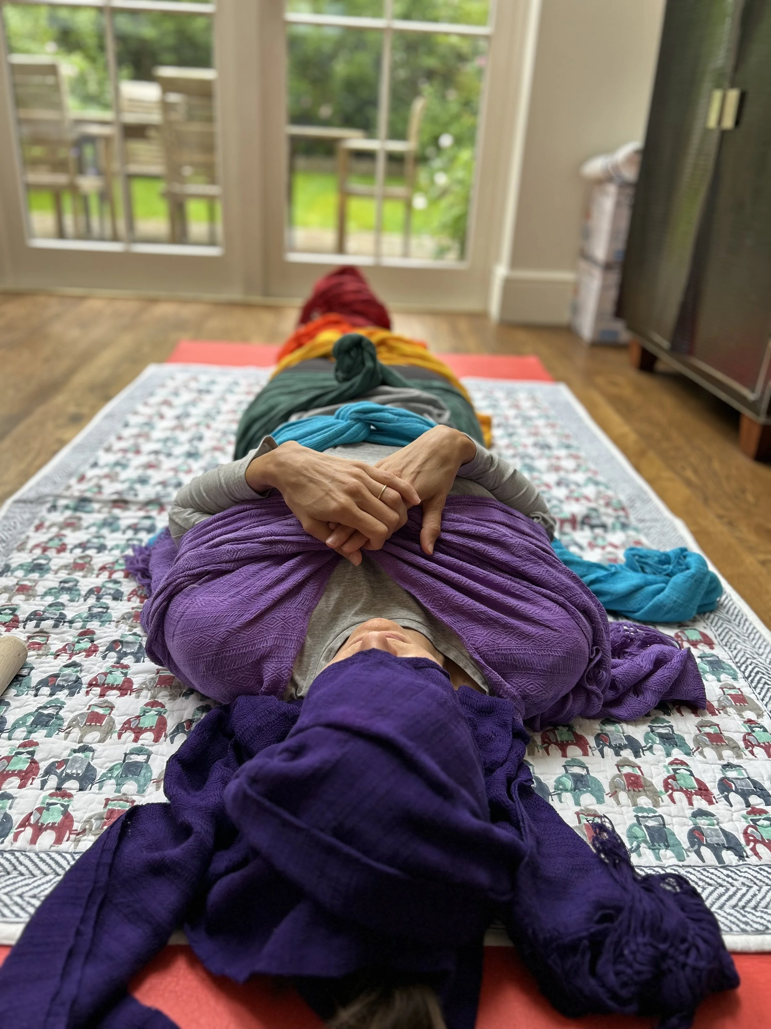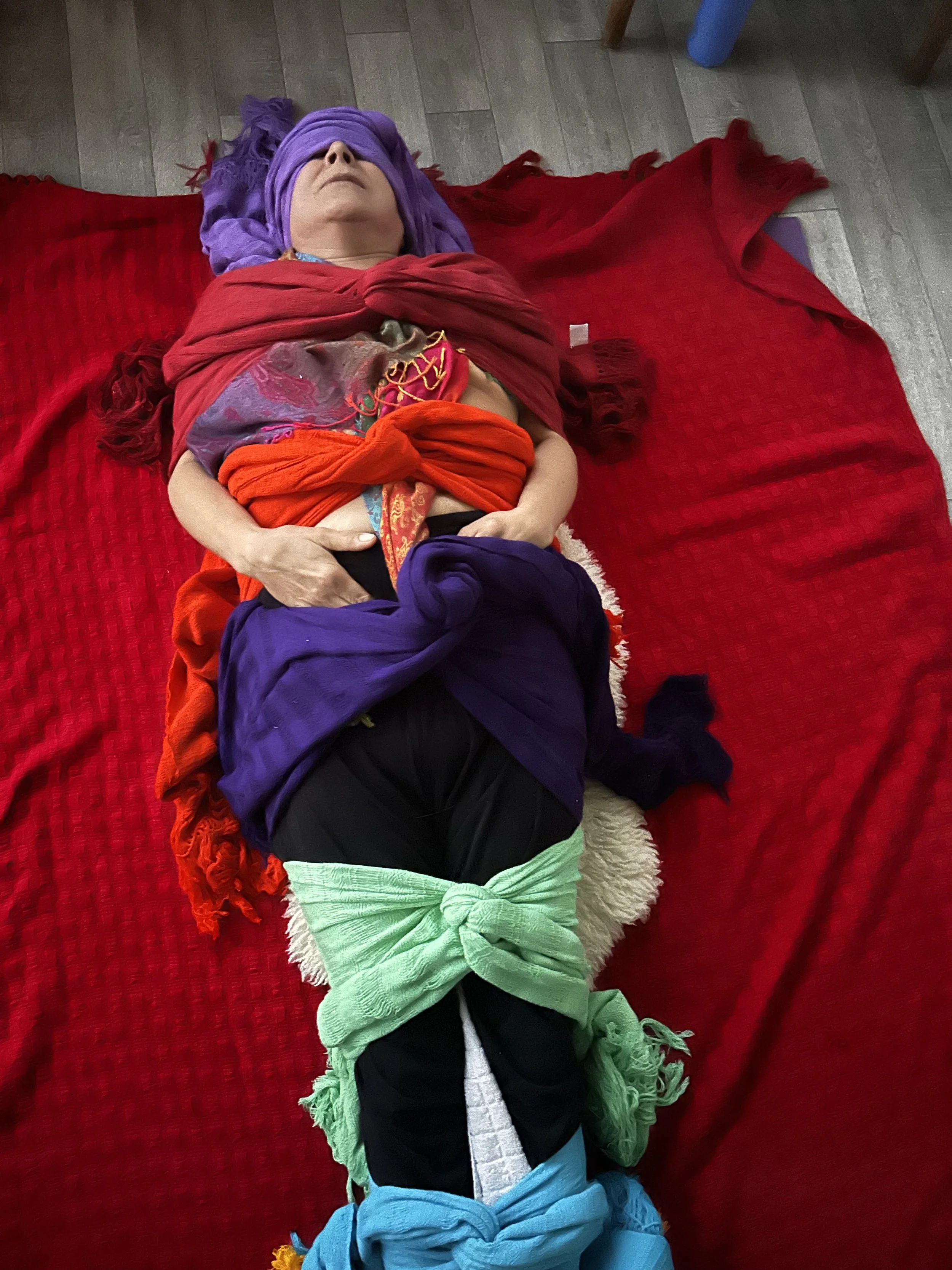 At first, my thoughts and feelings were jumbled and blurry. But as Sonia skilfully moved the rebozos around my body, I felt a great release in my body (especially hips and head) and in my emotions, gaining a deep sense of clarity and calm.